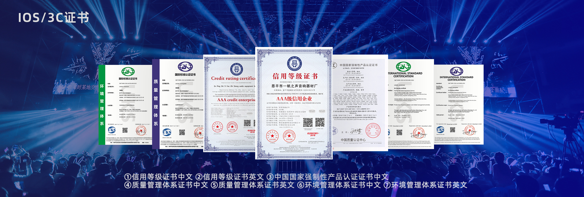 一帆音響已獲得質(zhì)量管理體系證書(shū),環(huán)管理體系證書(shū),AAA信用證書(shū),各種產(chǎn)品檢測(cè)報(bào)告等不同的證書(shū)。可提供投標(biāo)資質(zhì)的資料參與投標(biāo),助力拿下大工程
